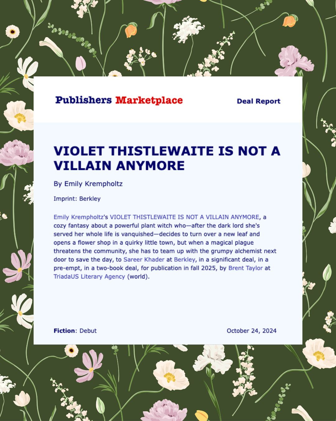 OH MY GOD EMILY’S BOOK WAS ANNOUNCED!!!! If you haven’t read the last newsletter, get on it.